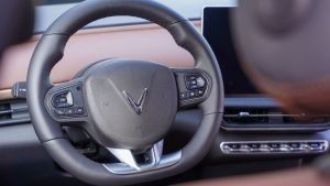 Vô-lăng 3 chấu thiết kế dạng D-cut thể thao, được nhấn nhá bởi các chi tiết mạ bạc, mang đến cảm giác sang trọng cho mẫu SUV điện phổ thông. Trên tay lái tích hợp các nút bấm chức năng tiện lợi.