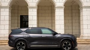 Thân xe sử dụng thiết kế khí động học với tay nắm cửa dạng ẩn, cửa hít hiện đại và mâm xe hợp kim lên tới 22 inch, phù hợp với thân hình đồ sộ của xe. Gương chiếu hậu sơn cùng màu thân xe, tích hợp chỉnh/gập điện và báo rẽ tiện lợi. Các đường nét thân xe được tối giản nhưng vẫn toát lên vẻ khỏe khoắn, sang trọng.